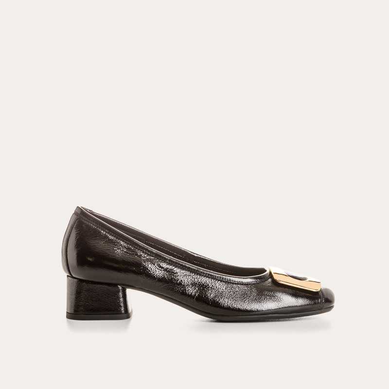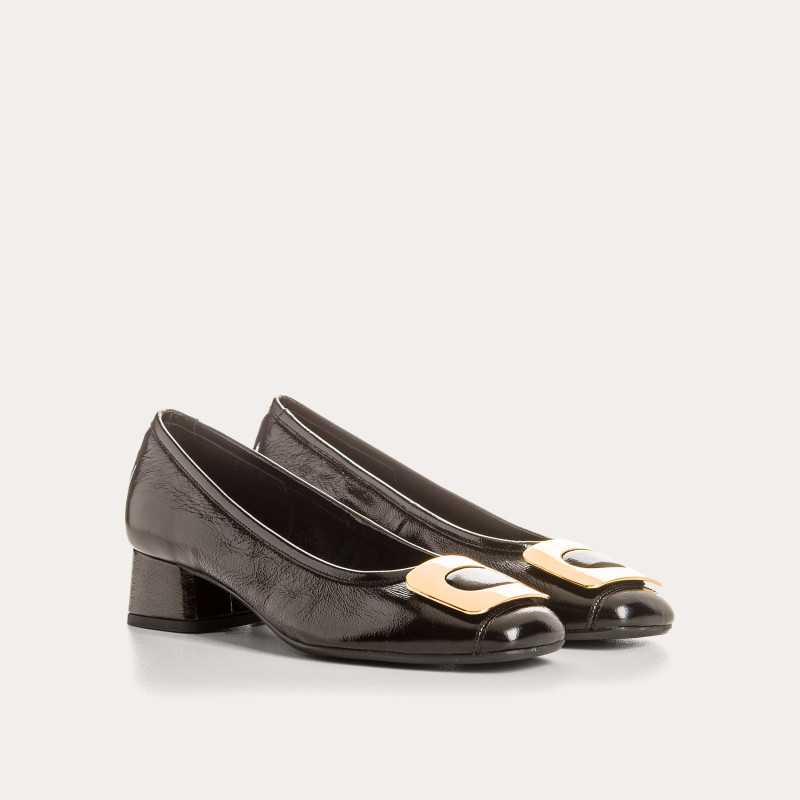 Élégantes et pleines de caractère, les ballerines Kiona se déclinent en cuir vernis Naplak, rehaussée d’une plaque bijou dorée sur le dessus. Montées sur un talon de 3,5 cm, elles offrent confort et allure, idéales pour celles qui cherchent à conjuguer style et praticité au quotidien. À porter avec un pantalon, une jupe midi ou une robe fluide pour un look raffiné et lumineux.