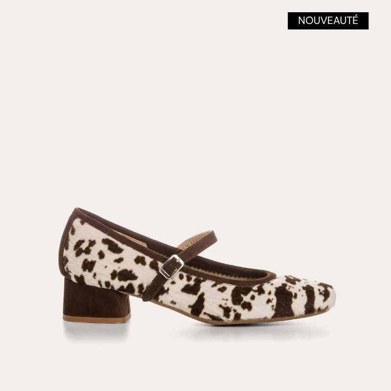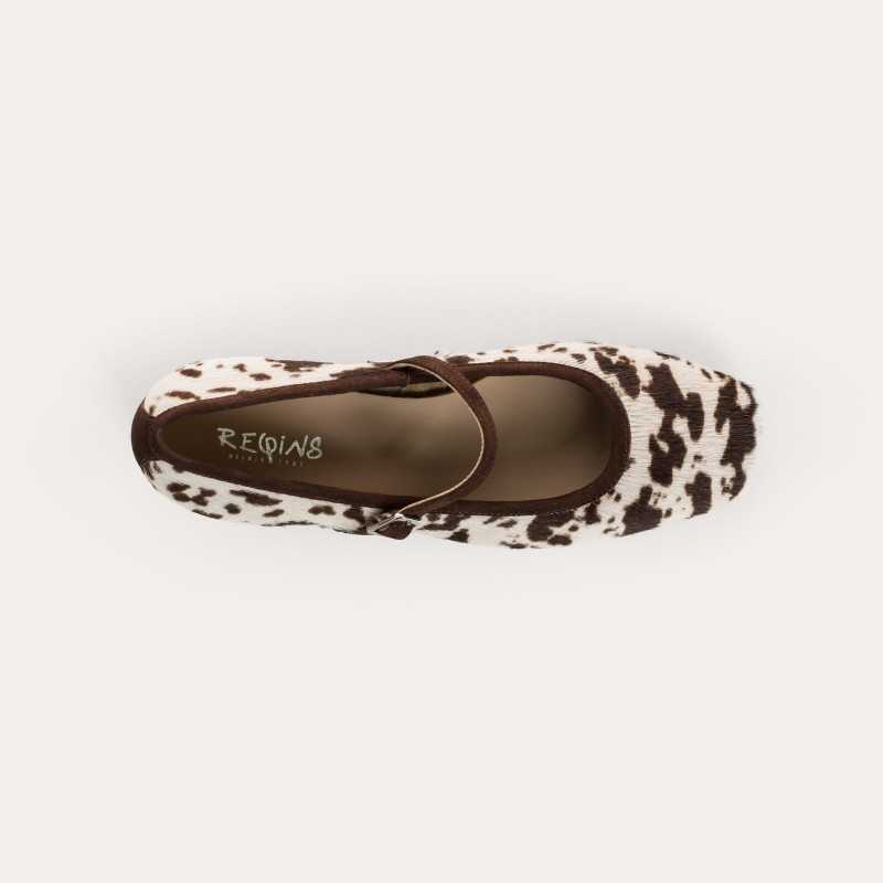 Le savoir-faire Reqins s'exprime pleinement dans les ballerines Kelly en cuir imprimé vache. Doté d'un talon de 3,5 cm, ce modèle à bride garantit une silhouette élancée et un maintien optimal pour vos déplacements citadins. Astuce style : elles complètent à merveille un pantalon city raccourci et une chemise en coton pour une silhouette distinguée. Un essentiel Reqins qui promet style et confort.
