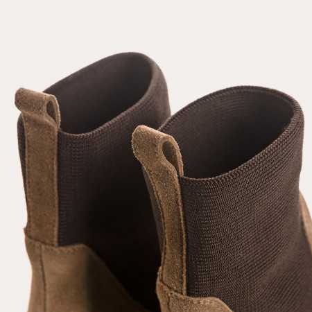 Inspirées de la chelsea boot, les bottines Evalou en cuir velours moka affichent une allure chic et pleine de caractère. Leur tige élastiquée de 15 cm et leur fermeture éclair intérieure facilitent l’enfilage, tandis que la semelle crantée et le talon de 6,5 cm assurent confort et stabilité. Élancées et modernes, elles se portent avec jean slim, robe pull ou pantalon large pour un look urbain et sophistiqué.