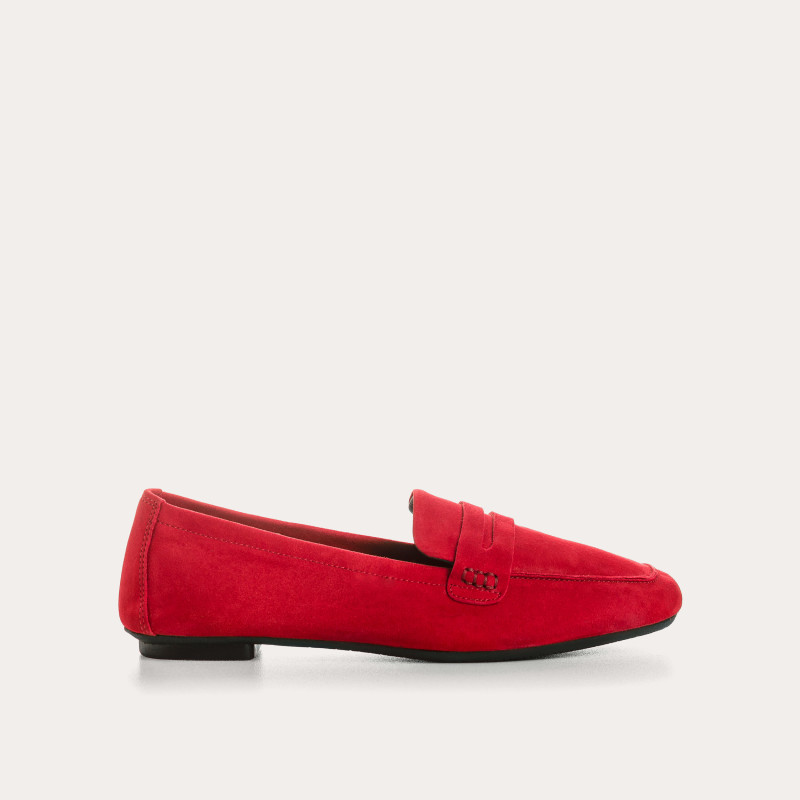 MOCASSINS FEMME HEMA CUIR VELOURS ROUGE FONCE
